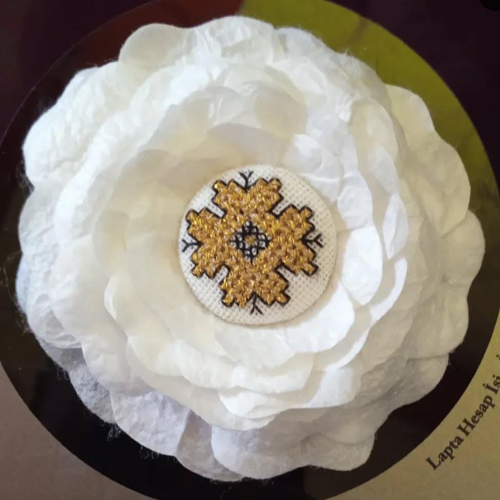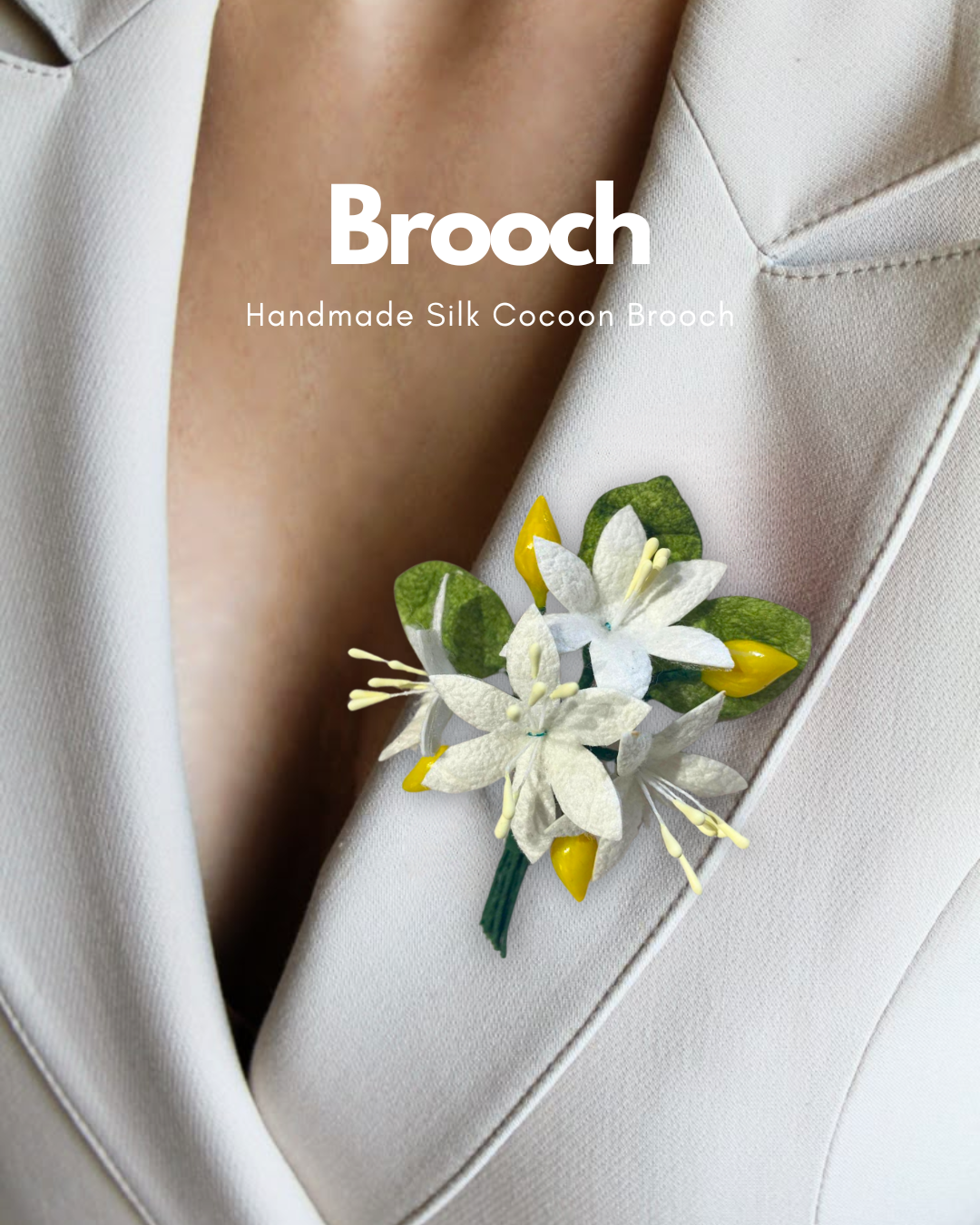 Handmade Natural Silk Cocoon Brooches & Traditional Embroidery Cross Stitches